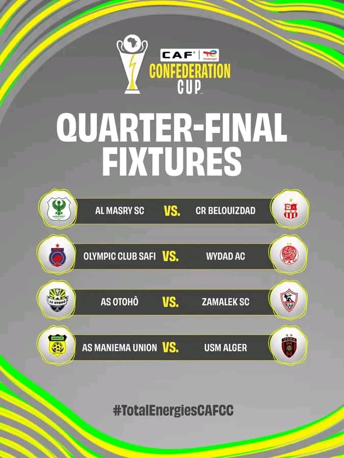 Les autres affiches des quarts de finale opposeront Al Masry au Belouizdad, l’Olympic Club de Safi au Wydad, ainsi que l’AS Otohô du Congo Brazza au Zamalek.
