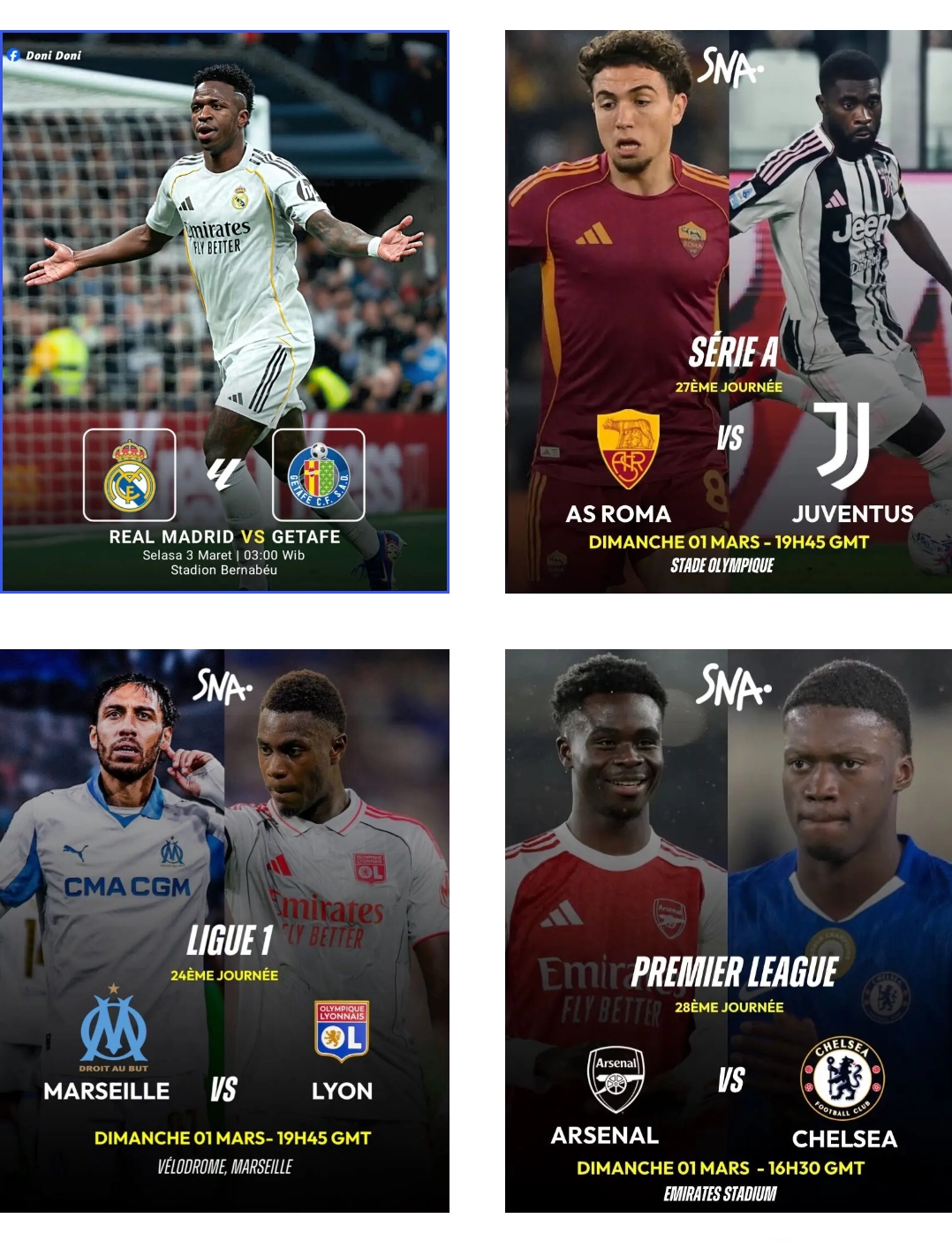 Les grands championnats européens proposent ce dimanche 1 mars 2026 une série de rencontres alléchantes, avec plusieurs affiches majeures en Espagne, en France, en Angleterre et en Italie.