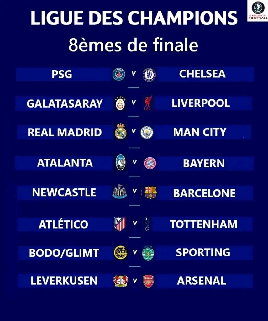 27 février : Le tirage au sort des huitièmes de finale de la Ligue des champions 2025/26 a été effectué : le Real Madrid affrontera Manchester City, et le FC Barcelone défiera Newcastle.