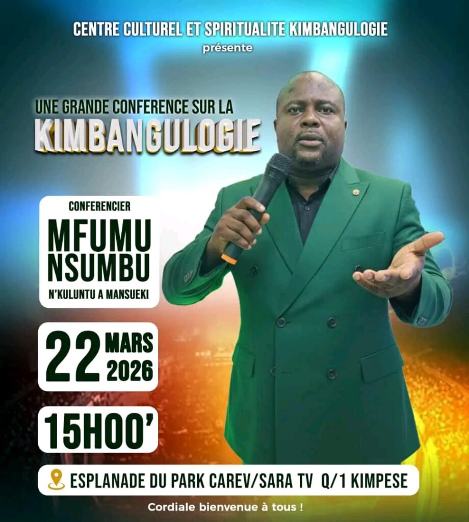 23 février : Le chef spirituel Mfumu Nsumbu Kisidi a annoncé une grande conférence sur la Kimbangulogie, prévue le 22 mars à Kimpese, pour sensibiliser sur cette idéologie culturelle et spirituelle.
